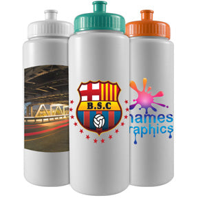 32 oz. Sports Bottle with Push Pull Cap. Ships assembled. Full Color Digital Imprint Molded from BPA-Free HDPE - Recycled Code 2
