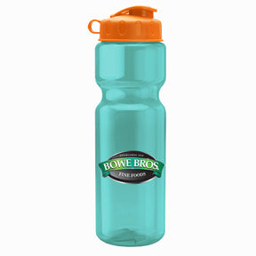 28 oz. Transparent Bottle with Flip-Top Cap with Full Color Digital Imprint. Ships assembled. Hand Wash Only. Molded from food-safe PETE. PETE is BPA-free