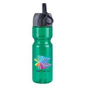 28 oz. Transparent Bottle with Flip Straw Cap with Full Color Digital Imprint. Ships assembled. Hand Wash Only. Molded from food-safe PETE. PETE is BPA-free
