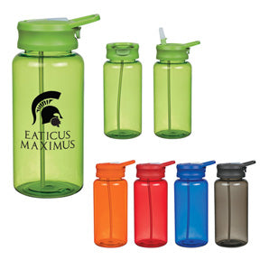 Screw on, spill resistant sip top lid. Easy carry handle. Impact and shatter resistant. Meets FDA requirements. BPA free. Hand wash recommended. Durable Tritan material.